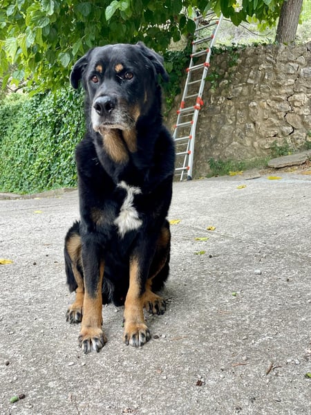 Dort lebt er schon länger mit 6 weiteren Hunden (vorwiegend Hündinnen und einem kleinen, jungen Rüden) zusammen und macht seine Sache wunderbar.