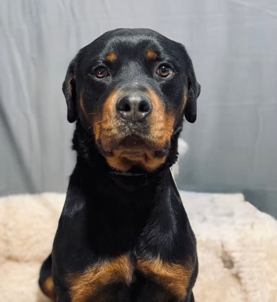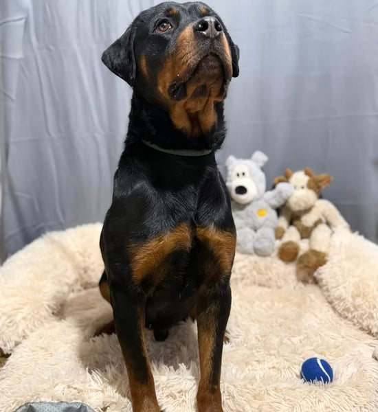 Da Rusty ein Rottweiler ist, müssen Interessenten sich unbedingt vorab über die Haltungsbestimmungen ihrer Gemeinde informieren.