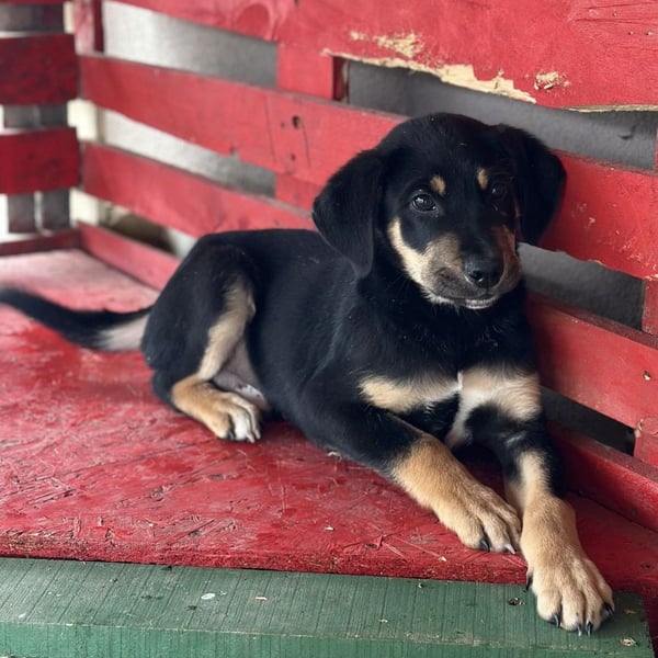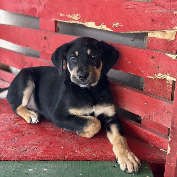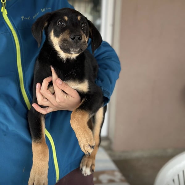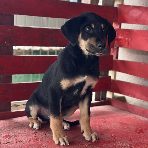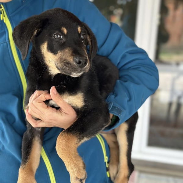 Rico ist ein kleiner Bub, laut Tierarztschätzung ca. 3 Monate alt (geb. 05.08.2025), aktuell 30 cm groß und wiegt 6,5 kg. Er ist ein Mischling, von der Färbung könnte er genetisch zu Rotweiler oder Dobermann gehören. Laut Tierarzt, wird einmal ein Hund größeren Formats werden, er könnte ca. 25-30kg erreichen.