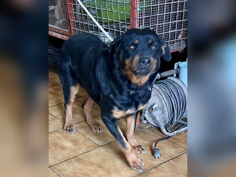 Rottweiler Hündin, 3 Jahre alt , kastriert, hat derzeit eine Schulterhöhe von 59 cm und wiegt aktuell 42 kg.