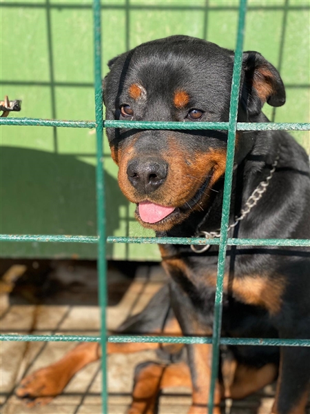 Luigi ist ein wunderschöner Rottweiler- Rüde und ist im November 2019 geboren. Der kastrierte Rüde stammt aus einem kroatischen Tierheim und ist seit kurzem auf einer Pflegestelle in Brandenburg.