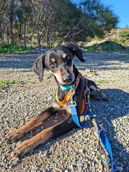 Pixie, ein Saluki-Mix, sucht sportliche Menschen