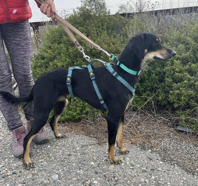 Sie versteht sich gut mit anderen Hunden und geht auch im Rudel gerne mit ihnen spazieren. Die Leine scheint sie zu kennen. Wir vermuten das sie ein Saluki-Mix sein könnte, vom Körperbau her ist sie sehr zierlich und hat lange Beine.