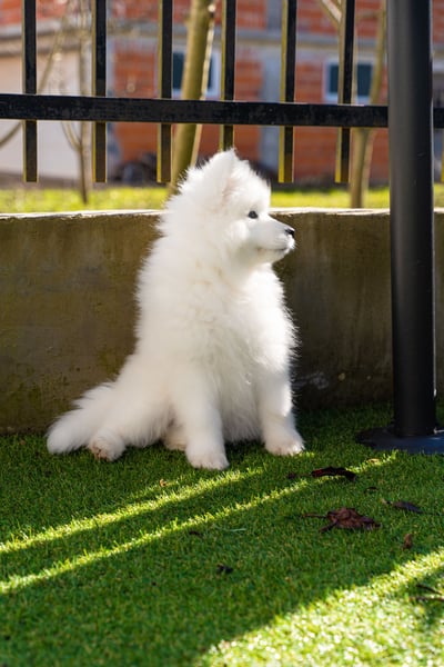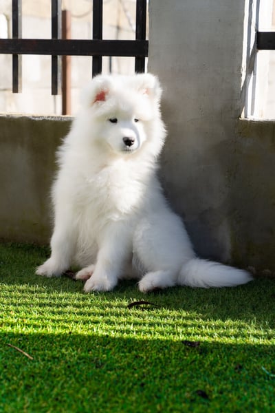 Unsere Samojede wohnen bei uns mit im Haus und werden von Anfang an gut sozialisiert, d.h. lernen alle Alltagsgeräusche sowie andere Hunde und unsere Katze kennen.