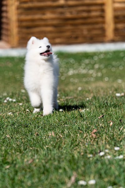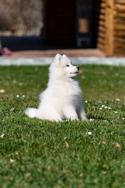 Unsere Samojede wohnen bei uns mit im Haus und werden von Anfang an gut sozialisiert, d.h. lernen alle Alltagsgeräusche sowie andere Hunde und unsere Katze kennen.