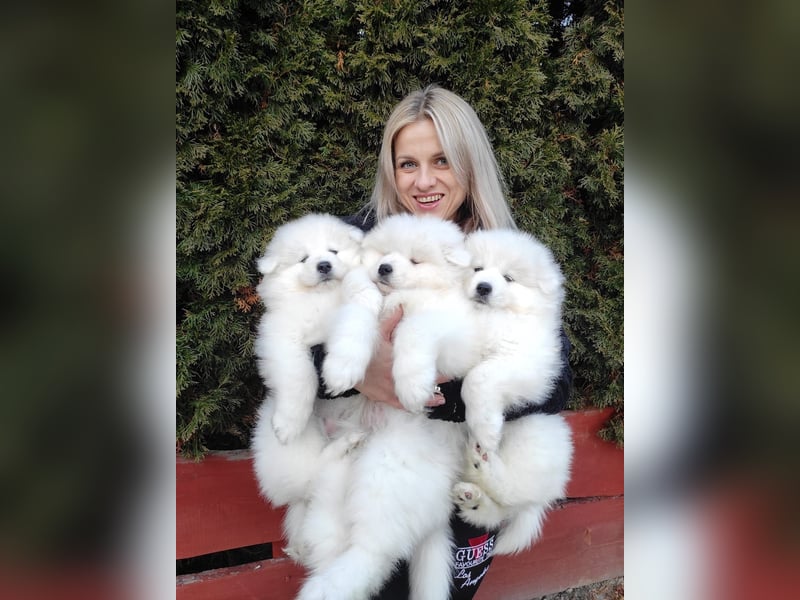 Am 27. Januar 2026 wurden fünf wunderschöne Samojedenwelpen geboren. Aktuell suchen noch drei Welpen ein Zuhause: ein Rüde und zwei Hündinnen. Die Welpen entsprechen dem Rassestandard.