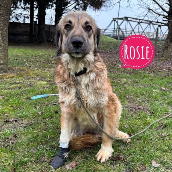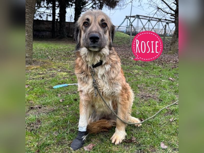 Rosie wurde mit einer verletzten Pfote gefunden, zum Glück nichts Schlimmes, wird aber noch aktuell behandelt. Die Wunde heilt gut ab und stellt kein langfristiges Problem dar.