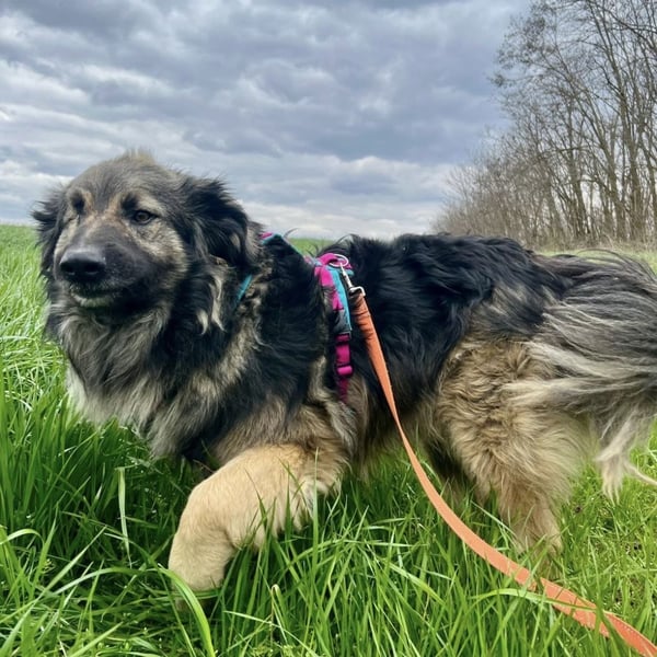 Er liebt Menschen, kennt und mag Kinder, ist mit allen Artgenossen super verträglich, läuft perfekt an der Leine.
