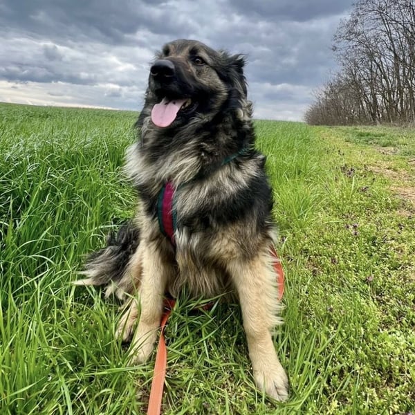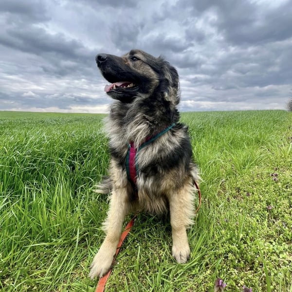 Billy ist ein Bub, er ist laut Tierarztschätzung ca. 4 Jahre alt (geb. 30.03.2022), ca. 60cm groß und ca. 25-30kg. Vermutet wird ein Sarplaninac Mischling.