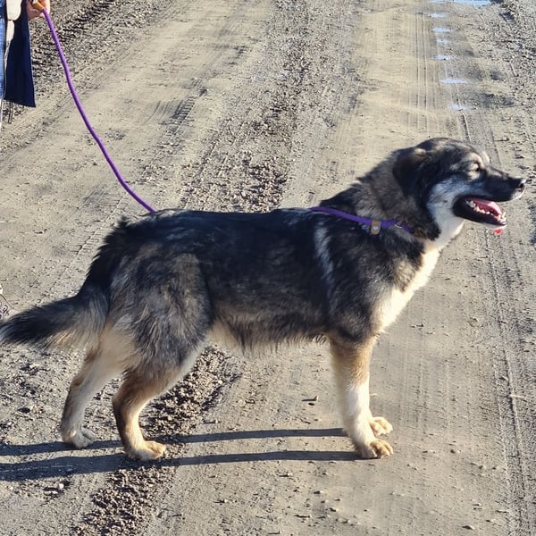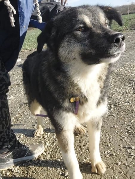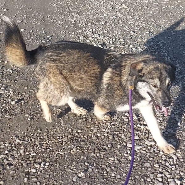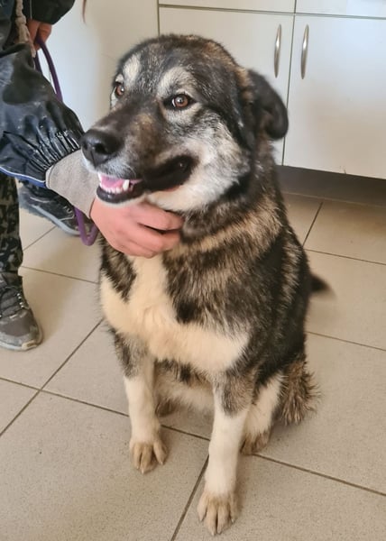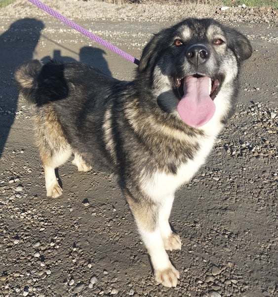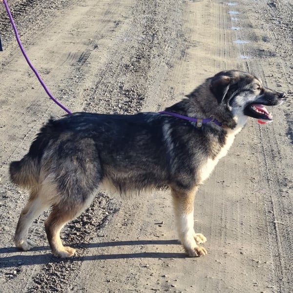 Aurora ist ein Mädchen, sie ist laut Tierarztschätzung ca. 1,5 Jahre alt (geb. 01.08.2024), wiegt 30 kg und ist 59 cm groß. Vermutet wird ein Husky-Schäferhund-Sarplaninac Mischling.