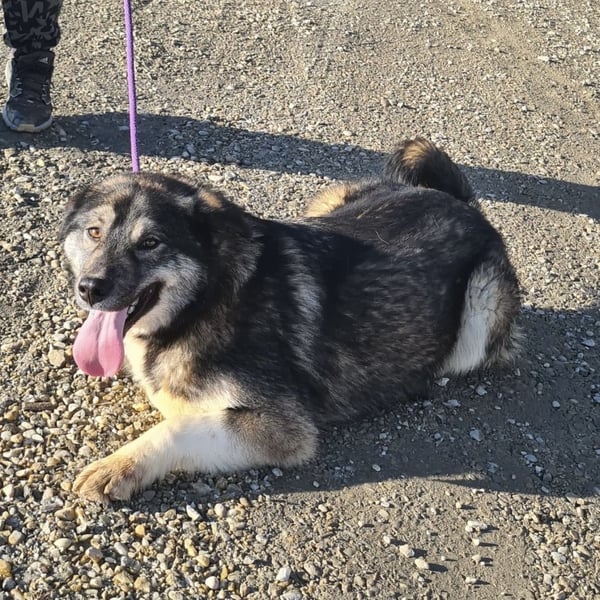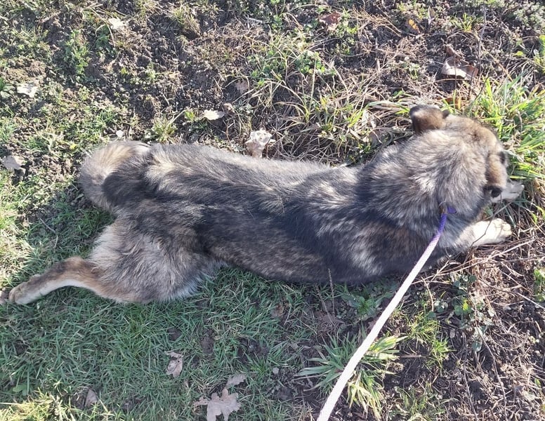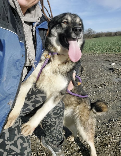 Aurora ist ein solcher Hund. Ihr Aussehen lässt vermuten, dass vielleicht ein Husky in ihr steckt – ihre Augenmaske und das dichte Fell erinnern daran. Gleichzeitig wirkt ihr kräftiger Körperbau, ihre Breite und Stärke ein wenig wie bei einem Schäferhund, vielleicht sogar wie bei einem Šarplaninac. Auf dem Papier klingt das nach viel Charakter und Eigenständigkeit – doch Aurora überrascht.