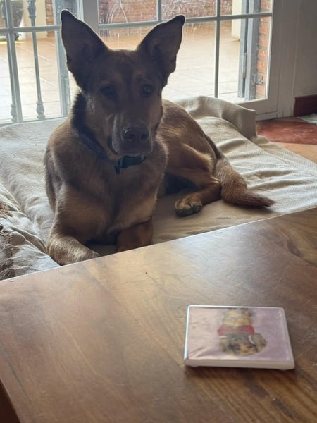 Freut sich, wenn er bei seinen Menschen sein darf. Er kennt Kinder und Katzen. Ist sehr sozial mit anderen Hunden und spielt gerne mit ihnen.