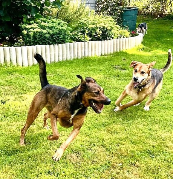 Queca ist mit ihren 35 Kilo und fast 70 cm Rückenhöhe ein großer und richtig hübscher Schäferhund- Mischling mit lustigen Klapp- Schlapp- Stehohren. Ihr Alter wird auf 5 Jahre geschätzt, sie ist kastriert, geimpft, gechipt und auf die Mittelmeerkrankheiten getestet sowie tierärztlich untersucht. Queca ( gesprochen Keka) stammt aus einem spanischen Tierheim und war dort über ein Jahr lang in einem engen Zwinger eingesperrt, zusammen mit weiteren Hunden, weshalb wir sagen können, dass sie verträglich und problemlos mit anderen Hunden ist. So kann man angenehme Spazierrunden mit ihr machen, und sie geht recht gut an der Leine ohne allzu viel zu ziehen. Wenn sie auf ihren Namen hört, sollte man Queca auch laufen lassen können, denn sie ist lauffreudig und aktiv und kein Hund für Langweiler sondern eher für sportliche und aktive Menschen.