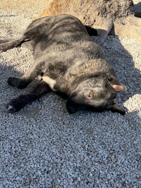 Judit wurde zusammen mit ihren Welpen ausgesetzt aufgefunden und kam zum Glück im Februar zu Andres in die Station. Dort zeigte sie sich als sehr gute, sehr beschützende Mutter. Seitdem der Nachwuchs ausgezogen ist, darf Judit nun im Mittelpunkt stehen und hat sich zu einer Seele von Hund entwickelt, die wir im Juli bei unserem Besuch in Spanien selbst kennenlernen konnten.