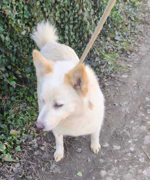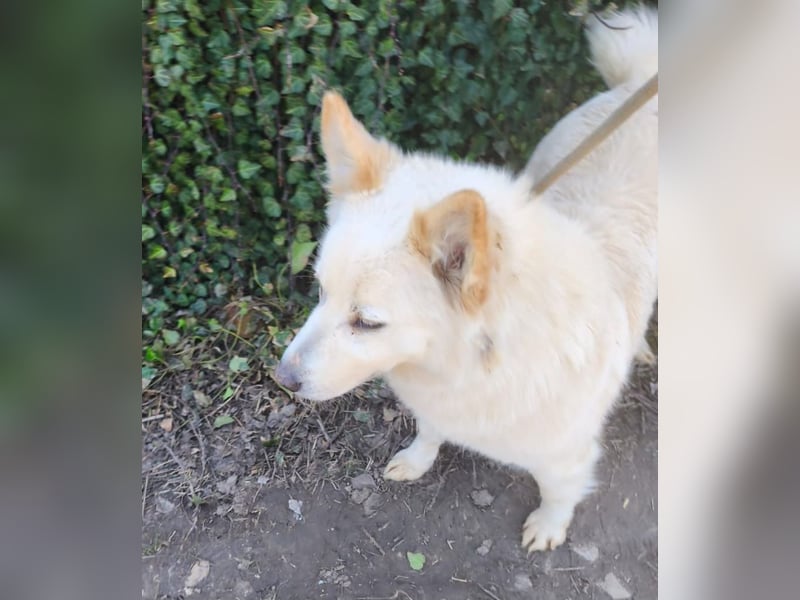 Klara - weißer Schäferhund-Mischling möchte sein Ticket von Rumänien nach Deutschland