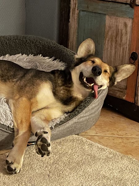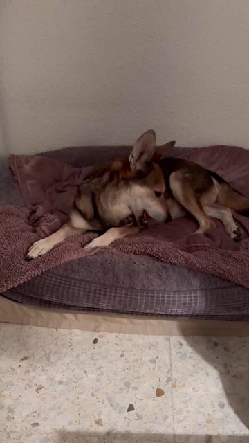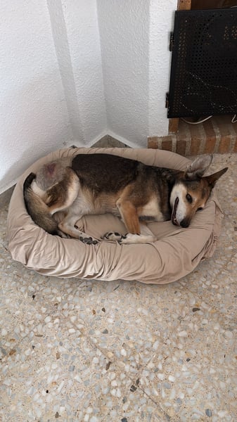 Sie ist 12 Jahre alt und hatte vor 3 Monaten eine Femurkopfresektion, seitdem läuft sie schmerzfrei durch die Gegend. Ich unterstütze durch eine monatliche Librela Spritze, da die andere Hüfte auch noch mehr die beste ist.