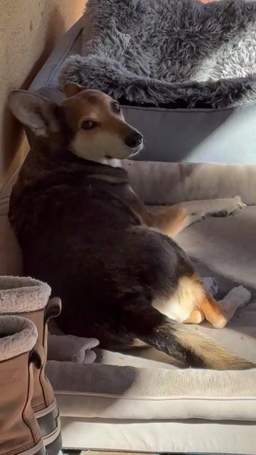 Am liebsten liegt sie den ganzen Tag im Garten und beobachtet, hin- und wieder sagt sie Bescheid, wenn etwas passiert. Nachts schläft sie im Kôrbchen mit allen zusammen.