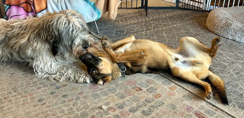 Mein Pflegefrauchen hier sagt, dass ich ein sehr schlaues Kerlchen bin, natürlich habe ich als Schäfiwelpe ordentlich Power und spiele für mein Leben gern mit den anderen Hunden, die hier leben.