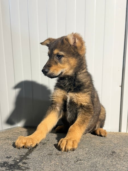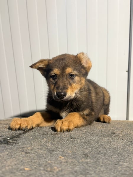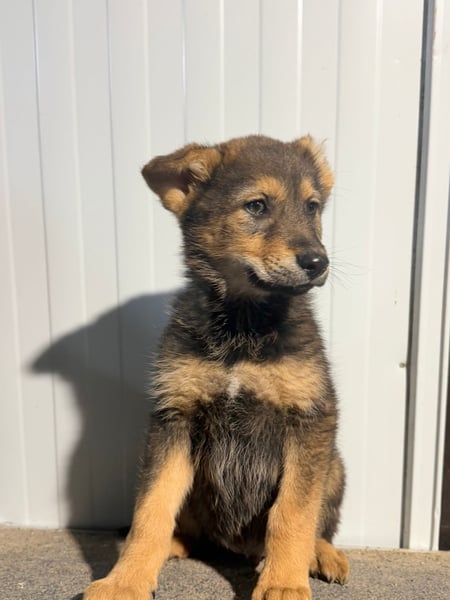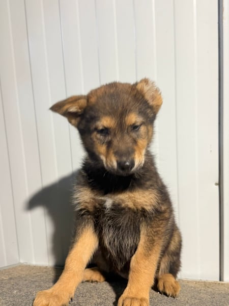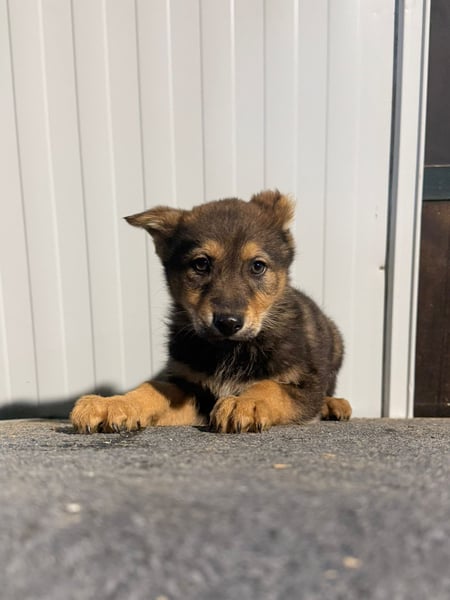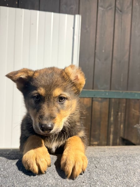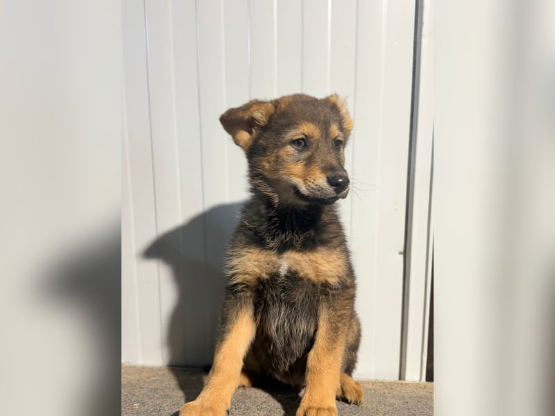 Vincent ist ein ganz besonderer junger Schäferhund-Mischling. Mit seinen etwa 4,5 Monaten steckt er voller Lebensfreude, Neugier und dem Wunsch, die Welt zu entdecken. Seine hellbraunen Pfoten, das sanfte Fell und sein ausdrucksstarker Blick lassen ihn schon jetzt wie ein kleiner Wolf wirken. Dazu kommt ein einzigartiges Merkmal: Sein linkes Ohr fehlt zur Hälfte. Was genau passiert ist, wissen wir leider nicht – vielleicht war es ein Unfall in ganz jungen Wochen oder eine unglückliche Begegnung mit großen Hunden. Doch dieses kleine Handicap schmälert weder sein Wesen noch seine Schönheit. Es macht ihn vielmehr zu einem Hund, den man sofort wiedererkennt und der einem direkt ins Herz springt.