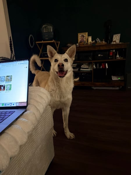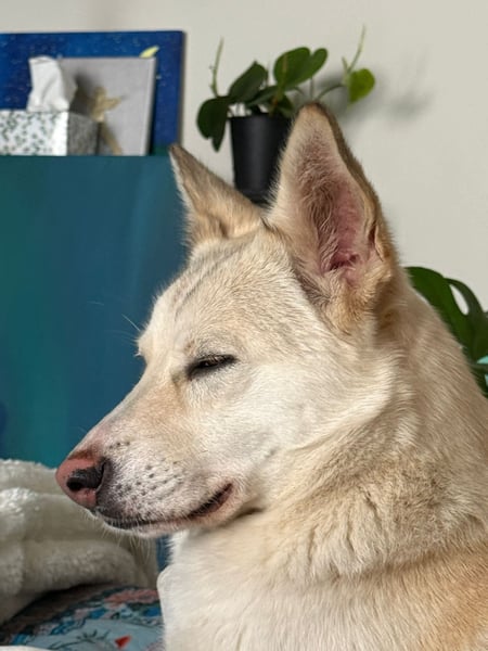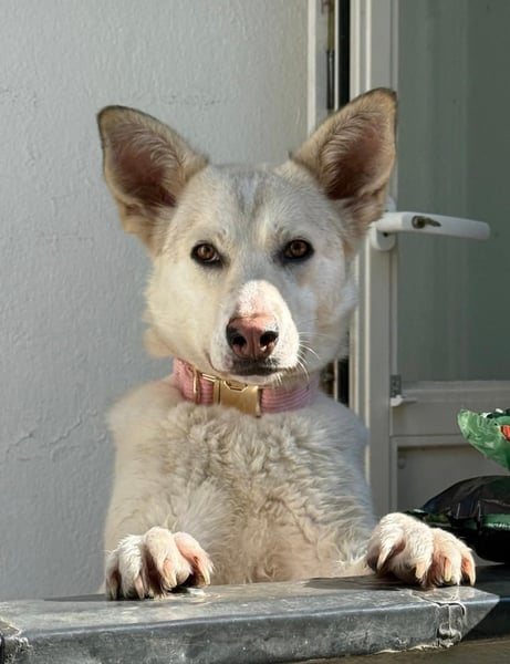 White ist eine ganz entzückende junge Hündin – gerade einmal etwa 15 Monate alt und damit mitten im besten Alter, um die Welt zu entdecken. Mit ihren ca. 50 cm Schulterhöhe und 18,5 kg bringt sie die perfekte Mischung aus Freizeitkumpel und Kuschelfaktor mit. Doch was sie wirklich ausmacht, ist ihr wundervolles Wesen.