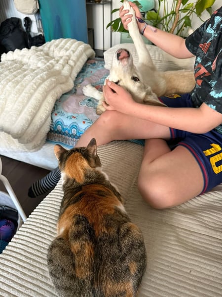 Sie ist unglaublich freundlich, begegnet Menschen mit einem offenen Herzen und zaubert mit ihrer lustigen, verspielten Art sofort ein Lächeln ins Gesicht. Schmusen gehört für sie einfach dazu – Nähe und Zuneigung genießt sie in vollen Zügen. Auch den 11-jährigen Sohn auf ihrer Pflegestelle hat sie sofort ins Herz geschlossen.