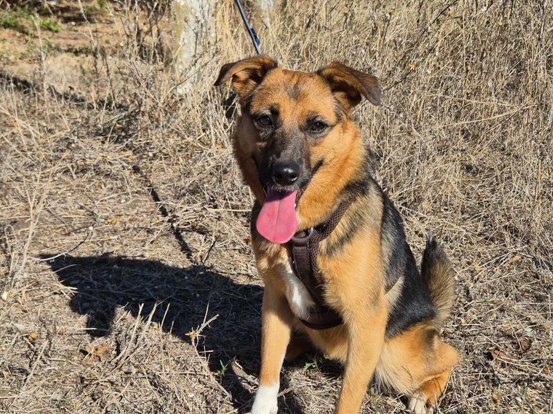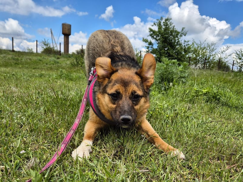 sucht ihr zufällig eine beste Freundin auf vier Pfoten? Jemand, der euch zum Lachen bringt, euch auf Trab hält und dabei auch noch richtig gut aussieht? Dann solltet ihr jetzt unbedingt weiterlesen – denn ich bin Ruby, eine junge und ausgesprochen freundliche Schäferhund-Mischlingshündin. Allerdings in der Kompaktversion: Mit meinen 44 cm Schulterhöhe passe ich zwar nicht in die Handtasche, aber ich bin eindeutig ein "Bonsai-Schäferhund", wie die Menschen hier oft schmunzelnd sagen.