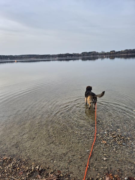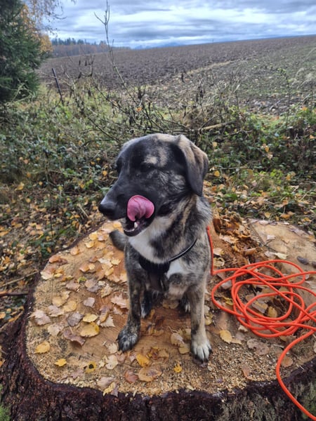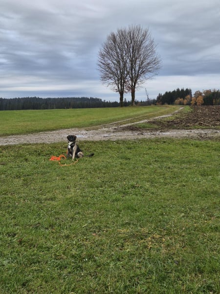 - Jagdtrieb: vorhanden aber bisher dennoch meistens ansprechbar im Wald an Schleppleine