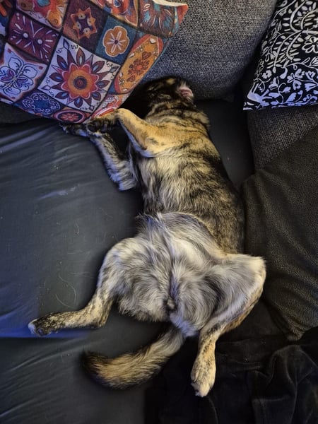 - Bleibt alleine: aktuell bis zu 3h mit Ritual (Snackball füllen), beim wieder kommen wirkt sie gestresst und braucht einen Ruhepool an dem sie sich orientieren kann. Dank Kamera war aber zu sehen dass sie während dem alleine bleiben schnell zur Ruhe kommt und schläft.
