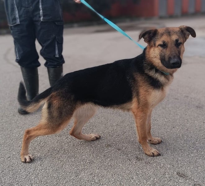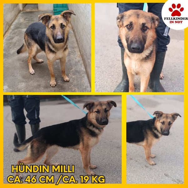 Milli (607 -24) ist eine mittelgroße, vermutlich Schäferhund Mischlingshündin.