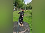 Kiba besucht regelmäßig die Hundeschule und macht dort sehr gut mit. Sie spielt gerne – sowohl mit anderen Hunden als auch mit Menschen. Besonders Bälle haben es ihr angetan, und große Fußbälle findet sie besonders spannend. Sie bringt Spielzeug zum Werfen und fordert aktiv zum Mitmachen auf.