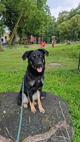 Schäferhund-Mix KIBA sucht ein neues aktives Zuhause mit Herz & Verstand
