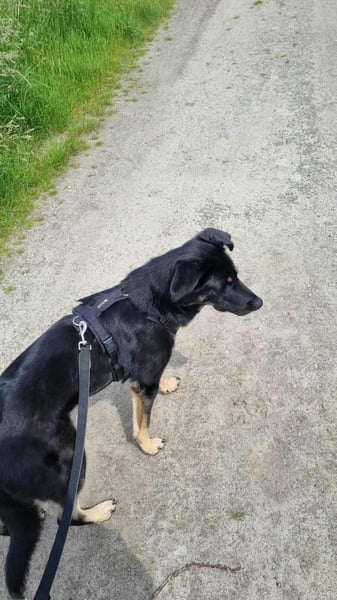 Sie liebt es, unterwegs zu sein, und ist eine aktive Hündin, die gerne gefordert wird. Schäferhundtypisch zeigt sie einen starken Wunsch, ihrem Menschen zu gefallen. In reizarmer Umgebung kann man sie bereits ableinen, sie zeigt sich dort zuverlässig und aufmerksam. Wenn jedoch zu viele Reize auf sie einwirken, hat sie noch Flausen im Kopf und lässt sich schnell ablenken. An der Schleppleine reagiert sie gut auf den Rückruf und zeigt einen gewissen Jagdtrieb, an dem weiterhin gearbeitet wird.