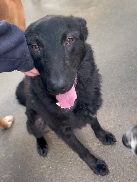Lupin ist einer der vielen schwarzen Hunde im Shelter, die es besonders schwer haben, gesehen zu werden. Ohne Hingucker und Abzeichen fallen sie oft durch das Raster der Wunschhunde.