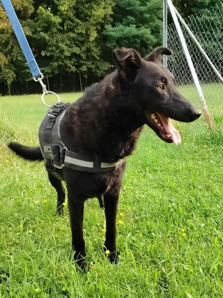 Er ist vermutlich eine Mischung aus Hütehund mit Schäferhund, etwas größer als der typische kroatische Schäferhund. Im Zwinger zeigt er sich sehr verträglich mit den anderen Hunden und möchte keinen Ärger.