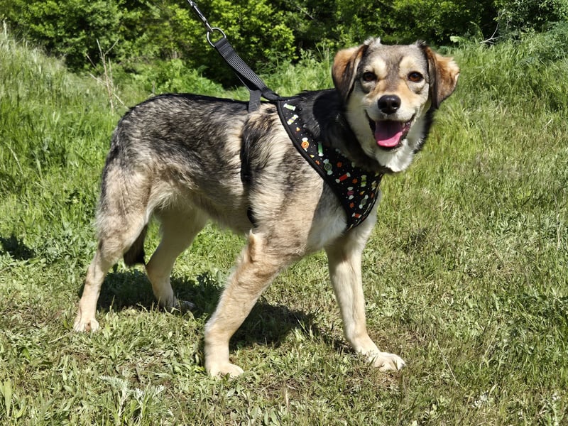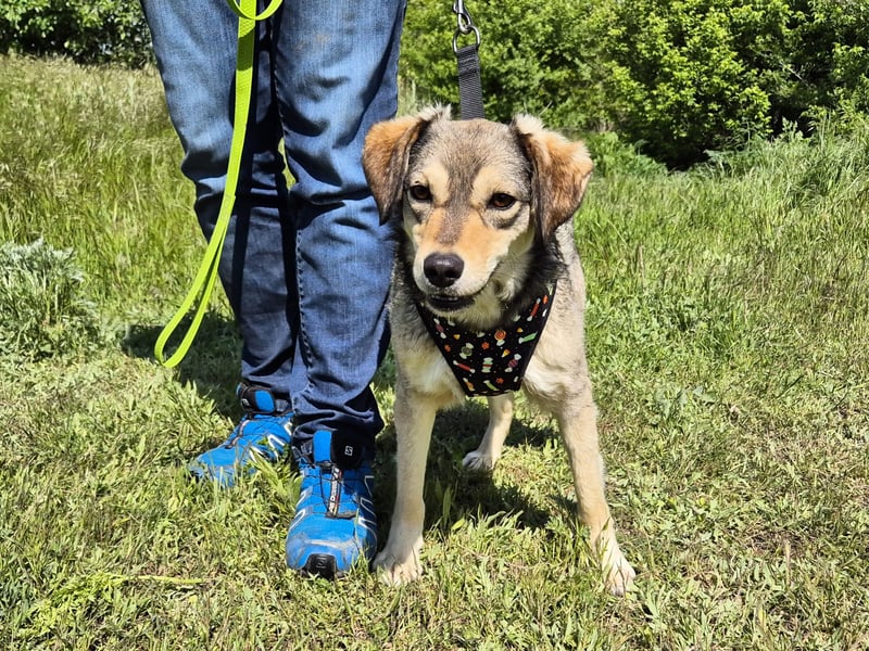 Die hübsche Mischlingshündin liebt es, kleine Ausflüge zu unternehmen, und läuft dabei bereits gut an der Leine. Sie erkundet ihre Umgebung mit einer angenehmen Mischung aus Zurückhaltung und Forscherdrang. Besonders wohl fühlt sie sich in der Gesellschaft anderer Hunde – sie orientiert sich stark an ihnen und gewinnt dadurch an Sicherheit. Deshalb wäre ein souveräner Ersthund im neuen Zuhause eine wertvolle Stütze für sie. Auch mit Katzen kommt sie gut zurecht, sodass bereits vorhandene Samtpfötchen im neuen Zuhause kein Problem darstellen.