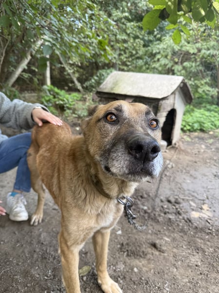 Füles lebt seit mehreren Jahren im Tierheim Kisvárda an der Kette angebunden, weil nicht genügend Zwinger frei sind. Ob das wirklich schlechter ist, sei mal dahin gestellt, denn Tierheim ist Tierheim und ihm geht es hier so oder so nicht gut. Er ist sehr dünn und wir haben das Gefühl, dass er sich langsam aufgibt und ihn die Situation sehr stresst, auch wenn man es ihm nicht anmerkt. Füles zeigt sich als absolut freundlicher, aufgeschlossener Kerl, der jede Aufmerksamkeit aufsaugt, Streicheleinheiten sehr genießt und dem die menschliche Nähe extrem fehlt.