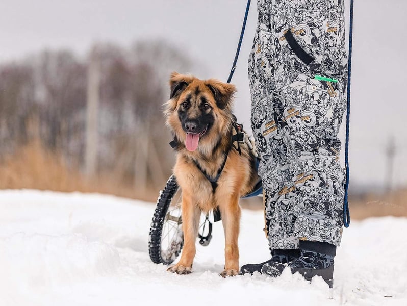 Jetzt lebt Enger endlich ein normales Leben. Dass er im Rollwagen läuft und keine Pfoten hat, stört ihn nicht im geringsten. Er genießt das Leben, ist immer fröhlich und spielt gerne mit anderen Hunden und Menschen.