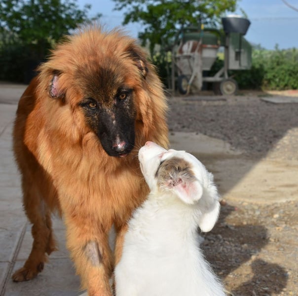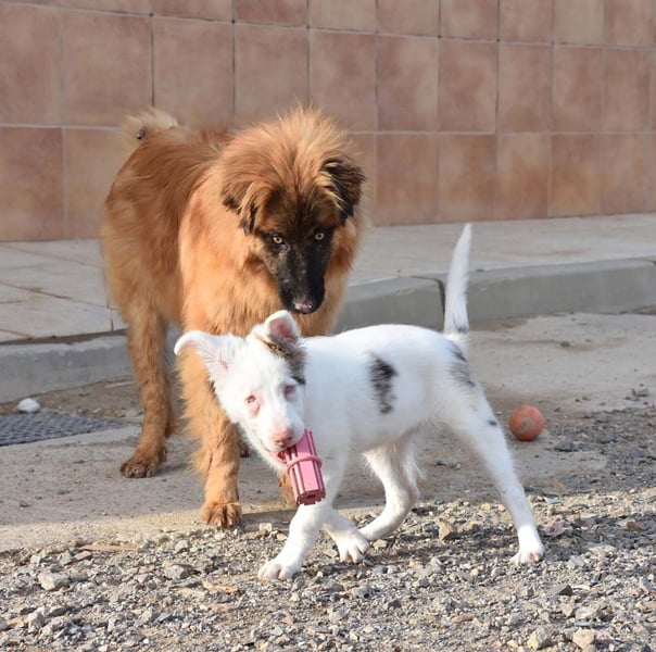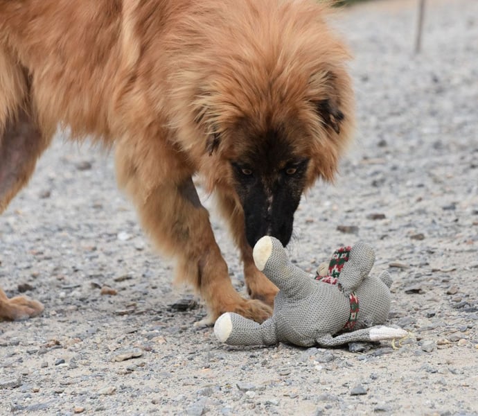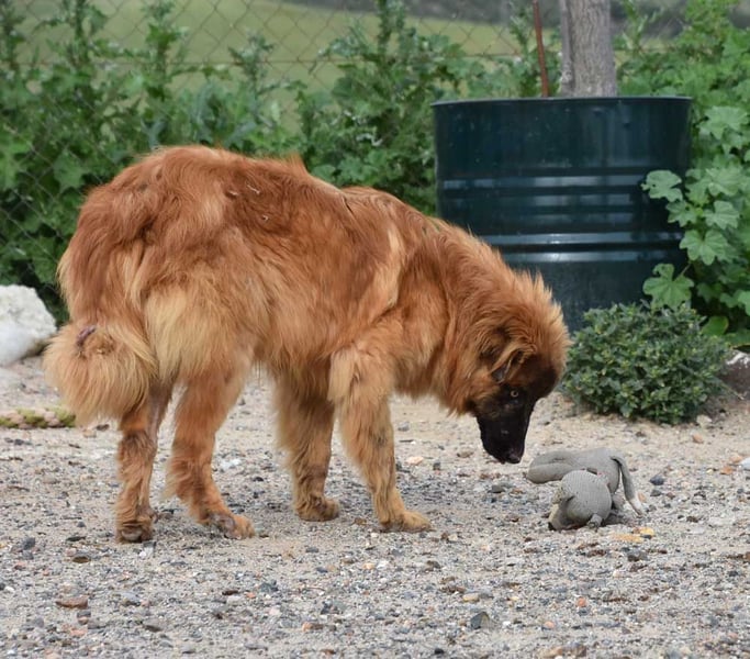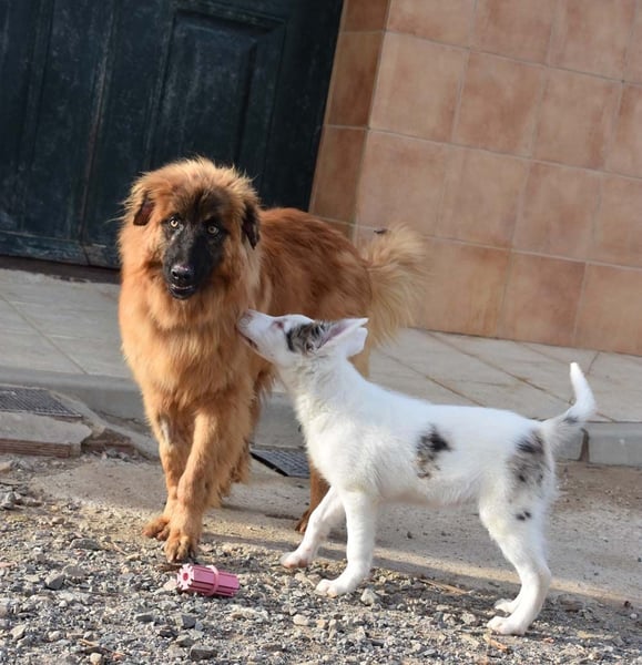 Was besonders schön zu beobachten ist: seine feine und höfliche Kommunikation mit den anderen Hunden – und ganz besonders auch mit kleinen Artgenossen. Obwohl er mit seiner prächtigen Löwenmähne recht massig aussieht, begegnet er kleinen Hunden sehr zärtlich und vorsichtig, sodass er auch von diesen gemocht wird und sie keine Angst vor ihm haben. Besonders unsere kleine Bali, ein Welpenmädchen, das blind und taub geboren ist, hat mit ihm Freundschaft geschlossen. Man sieht die beiden häufig miteinander kommunizieren – was für viele andere Hunde gar nicht so einfach ist, da Bali durch ihre Behinderungen eine ganz eigene Sprache hat.