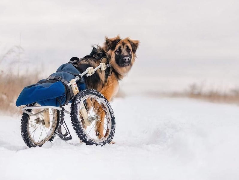 Jetzt lebt Enger endlich ein normales Leben. Dass er im Rollwagen läuft und keine Pfoten hat, stört ihn nicht im geringsten. Er genießt das Leben, ist immer fröhlich und spielt gerne mit anderen Hunden und Menschen.