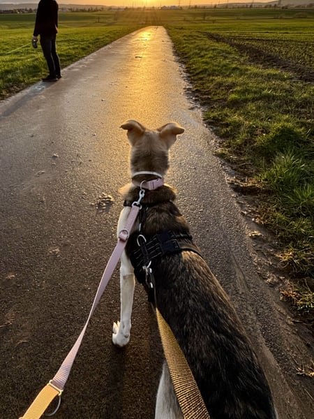 Sie bringt viel Energie, Lebensfreude und Neugier mit. Spaziergänge genießt sie in vollen Zügen, erkundet ihre Umgebung aufmerksam und zeigt sich dabei mutig und interessiert. Grundkommandos wie Sitz, Platz und ihr Name sitzen bereits gut, auch auf Pfeifen reagiert sie bereits. Sie ist lernfreudig und möchte arbeiten: beste Voraussetzungen, um gemeinsam weiter zu wachsen.