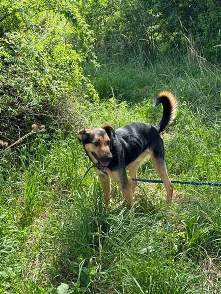 Gerade einmal 1 Jahr alt, bringt der schöne Rüde, in dem wohl auch eine Portion Schäfer steckt, viel Potential und Arbeitswillen mit. Bei seinen Bezugspersonen zeigt er sich sehr aktiv, lernwillig und freut sich über jede Form von Aufmerksamkeit und Zuwendung. Somit sollten auch seine neuen Menschen eher aktiv sein und Freude daran haben, viel mit ihrem Hund zu unternehmen. Der Besuch einer guten, positiv arbeitenden Hundeschule wird Pityke und seinen Menschen nach angemessener Eingewöhnungszeit bestimmt viel Spaß machen und eine Bereicherung des gemeinsamen Lebens darstellen.