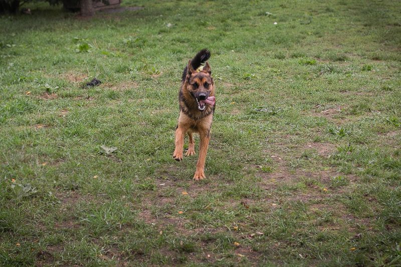 Jördi ist eine freundliche und liebe Hündin. Sie ist fröhlich unterwegs und läuft gut an der Leine. Beim Lernen ist sie auch sehr engagiert, denn sie hat in sehr kurzer Zeit den Befehl "Sitz" gelernt. Große Kontaktschwierigkeiten, die kennt Jördi nicht. Jördi versteht sich sehr gut mit anderen Hunden und lebt daher mit einem Rüden in einem Gehege zusammen. Wie fast alle Schäferhunde leidet Jördi ziemlich unter Stress, wenn sie in ihren Zwinger soll. Daher sind wir bestrebt, dass sie entweder öfters mit ins Trainingsgelände darf oder sich in ihrem Gehege aufhält.