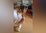 Sie ist anderen Hunden gegenüber freundlich und offen und zeigt sich sozial und ausgeglichen. Auch mit Katzen versteht sie sich wunderbar – auf der Couch liegt sie sogar Rücken an Rücken mit der Katze und genießt die Nähe.