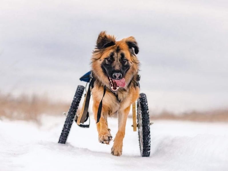 Jetzt lebt Enger endlich ein normales Leben. Dass er im Rollwagen läuft und keine Pfoten hat, stört ihn nicht im geringsten. Er genießt das Leben, ist immer fröhlich und spielt gerne mit anderen Hunden und Menschen.