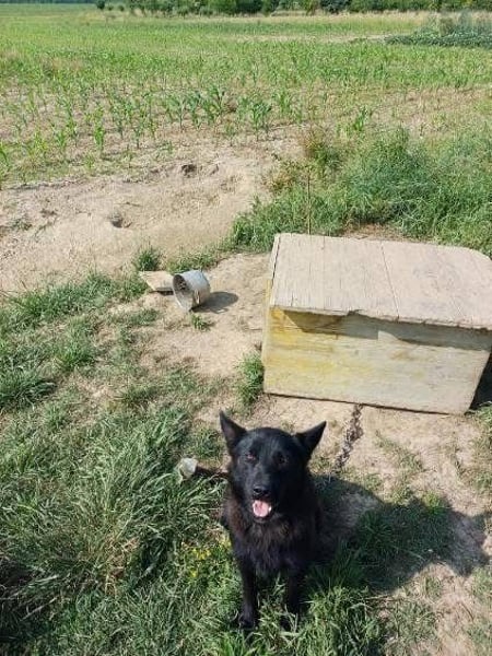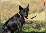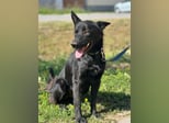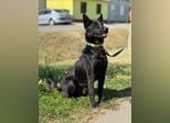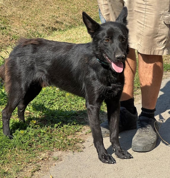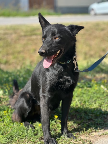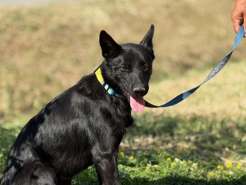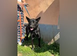 Pan ist ein wunderschöner, junger Rüde mit glänzend schwarzem Fell, wachen Augen und einem offenen, fröhlichen Wesen. Seine aufmerksame Haltung und die spitzen Ohren lassen sofort erkennen: Dieser Hund möchte endlich dazugehören, lernen, lieben und leben.