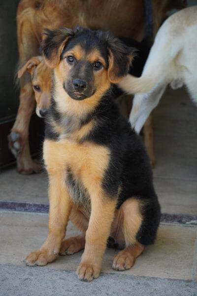 Wir sind fröhliche Hundekinder und auch sehr nett, sagen die Leute hier. Wir wachsen und lernen jeden Tag ein bisschen dazu. An der Leine laufen können wir noch nicht – das ist gar nicht so einfach, vor allem zu fünft! – aber die Menschen hier üben das mit uns. Und wir geben uns Mühe, denn wir haben gehört, dass man ein richtiges Zuhause bekommt, wenn man sich anstrengt. So ein eigenes Zuhause soll ganz toll sein: mit lieben Menschen, die uns zeigen, was wir dürfen und was nicht und die uns alles beibringen, was wir können müssen als gute Hunde. Eigene Körbchen, in denen wir schlafen dürfen, soll es da auch geben. Und wenn wir müde sind und uns noch nicht in das feine Körbchen trauen, bleiben die Menschen bei uns, bis wir eingeschlafen sind. So viele schöne Sachen gibt es in einem eigenen Zuhause … Vielleicht sucht Ihr ja gerade nach einem kleinen, lebensfrohen Gefährten? Dann könnte einer von uns Euer Herz erobern – und wir würden Euch für immer lieben.