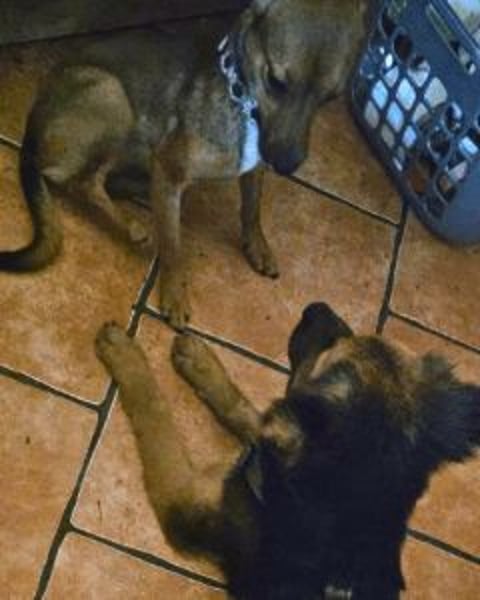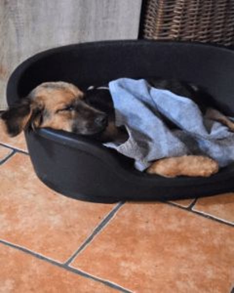 Dann kamen eines Tages Menschen in Uniform. Die hatten wohl gehört, dass wir da draußen ganz allein unterwegs waren. Sie sahen uns und konnten es nicht übers Herz bringen, uns in einem Hundelager abzugeben. Stattdessen riefen sie eine Tierschützerin an. Obwohl sie schon ganz viele Hunde bei sich hatte, hat sie uns trotzdem sofort zu sich geholt – sie hat einfach Ja gesagt.