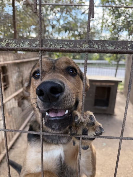 Jankó wurde als 3 Monate alter Welpe einsam an einem Fluss gefunden. Die erste Zeit durfte er bei der Tierheimleitung zuhause leben, aber musste nun leider ins Tierheim umziehen. Für einen aktiven jungen Hund der absolut falsche Platz.