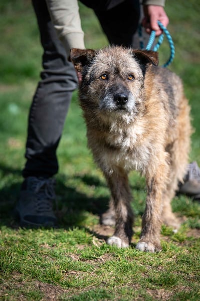 Spooks ist ein lieber und freundlicher Hund mit einer coolen Art und einfach angenehm im Umgang. Bei den ersten Untersuchungen im Tierheim hat er alles ganz brav mitgemacht. Er zeigt sich zudem zugänglich, menschenbezogen und aufgeschlossen und verschmust. Er ist kein Draufgänger und kein Beller, einfach ein entspannter Hund, den so schnell nichts aus der Ruhe bringt. Und dann wäre da noch sein ganz besonderer Look. Unser Team hat ihm liebevoll den Spitznamen „Schrotthändler“ verpasst –mit seinem strubbeligen Fell. Er ist einfach ein liebenswertes Unikat, aber genau das macht ihn besonders. Natürlich möchte Spooks noch einiges lernen – vom Hunde-ABC bis zu den Alltagsroutinen. Spooks zeigt sich verträglich und umgänglich mit Artgenossen.