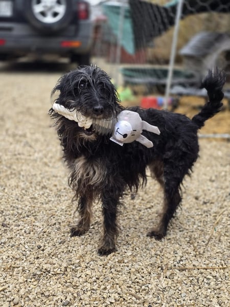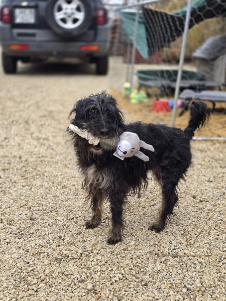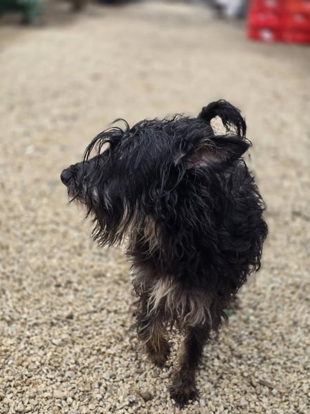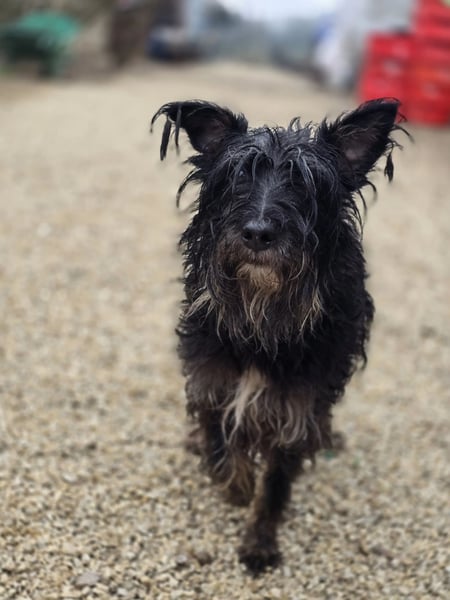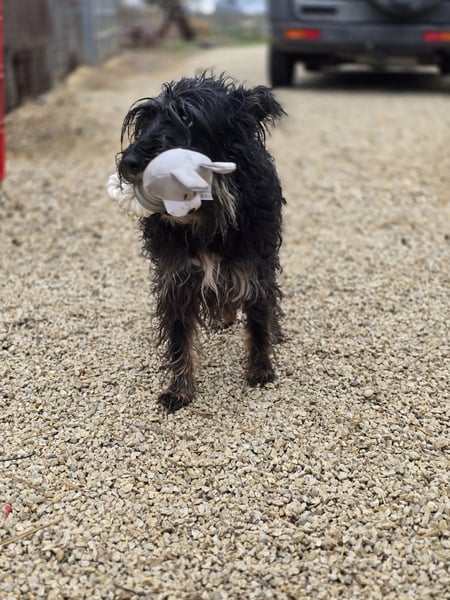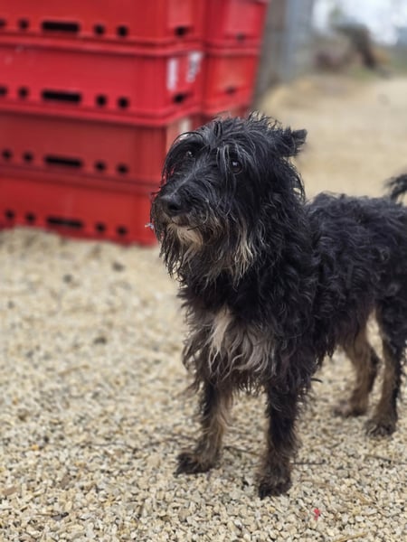 Borzi, die auch liebevoll „Struppi“ genannt wird, wurde auf den Straßen von Vackoló aufgefunden. Da sie keinen Chip hatte, gehen wir davon aus, dass sie keinen Besitzer hatte und möglicherweise niemand nach ihr sucht. In ihrer neuen Umgebung ist Borzi noch sehr unsicher. Besonders in der Nähe von Menschen zeigt sie sich ängstlich und schüchtern, vor allem bei fremden Männern. Obwohl sie keine aggressiven Tendenzen zeigt und niemanden beißt, reagiert sie bei Berührungen aus Angst oft mit Urinmarkierung.